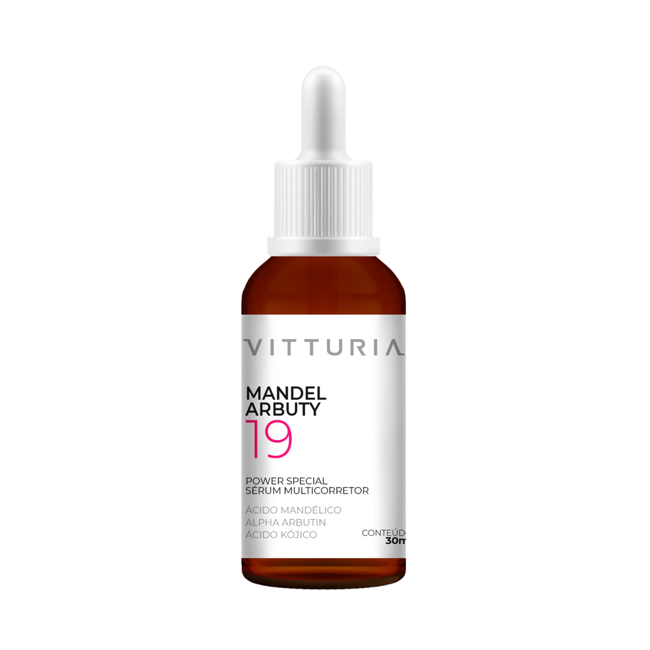 Sérum de ação altamente multicorretora. Age inibindo a produção de melanina e esfoliando a pele quimicamente com o objetivo de promover a renovação celular, com isso, o sérum Mandel Arbuty 19 melhora a aparência, uniformiza e corrige a tonalidade da pele. De acordo com as propriedades de seus compostos, ele também é indicado para peles sensíveis.
